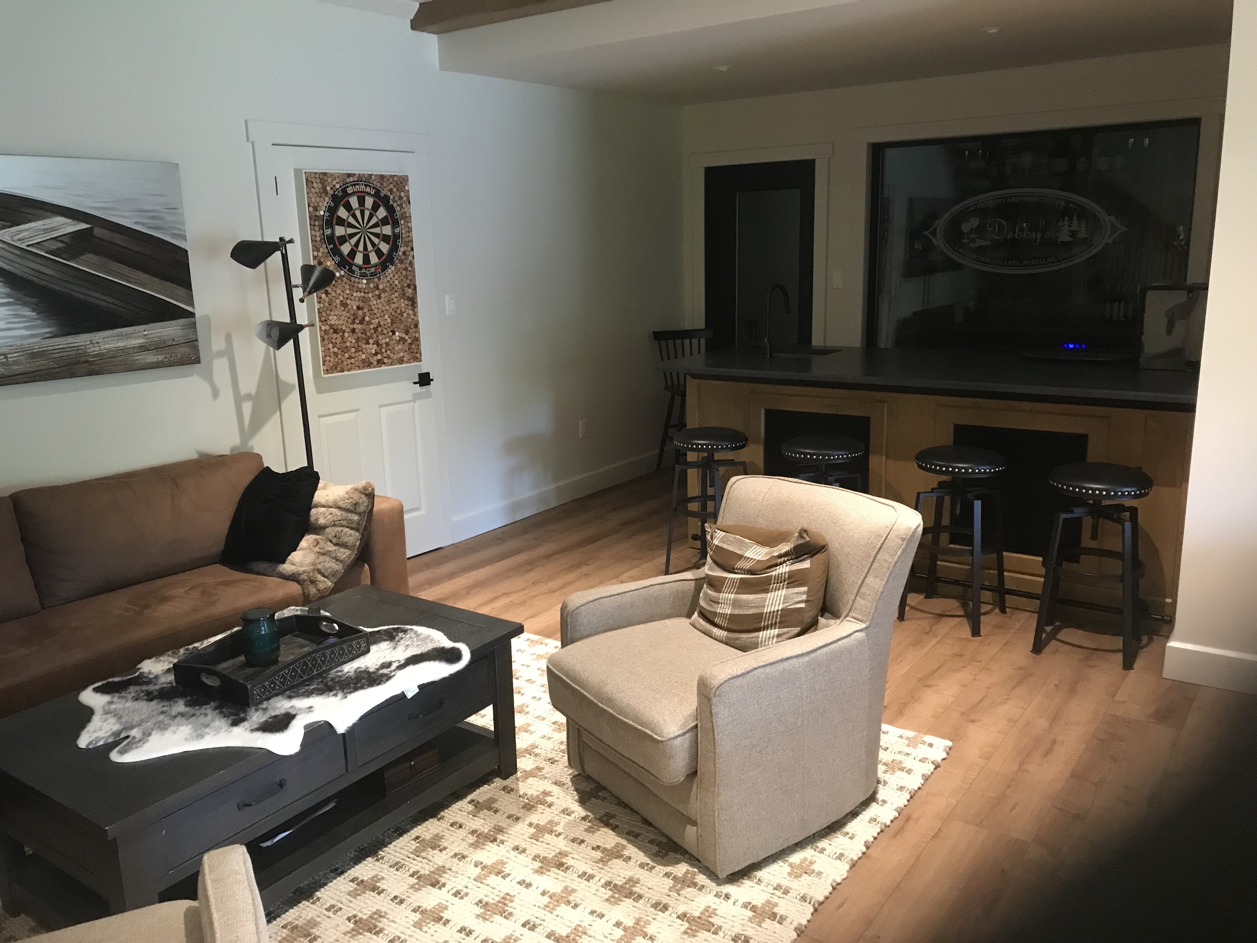 Unwind in a quiet lakeside retreat just minutes from Manitou Ridge. Set on 4.5 private acres with 350 ft of frontage, Birdie House on the Lake is designed for couples who want comfort, privacy, and a slower pace. With two queen bedrooms, each with a private ensuite, it’s the perfect setup for two couples travelling together.