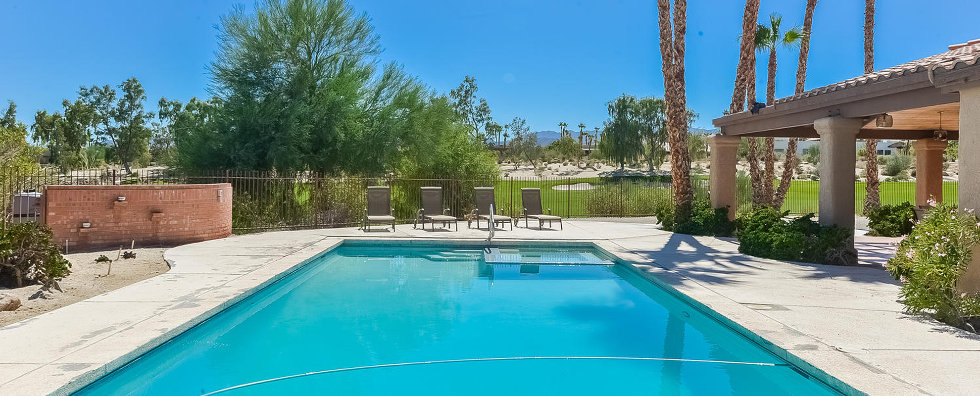 - Backyard pool, hot tub, BBQ and views of Rams Hill’s 2nd fairway